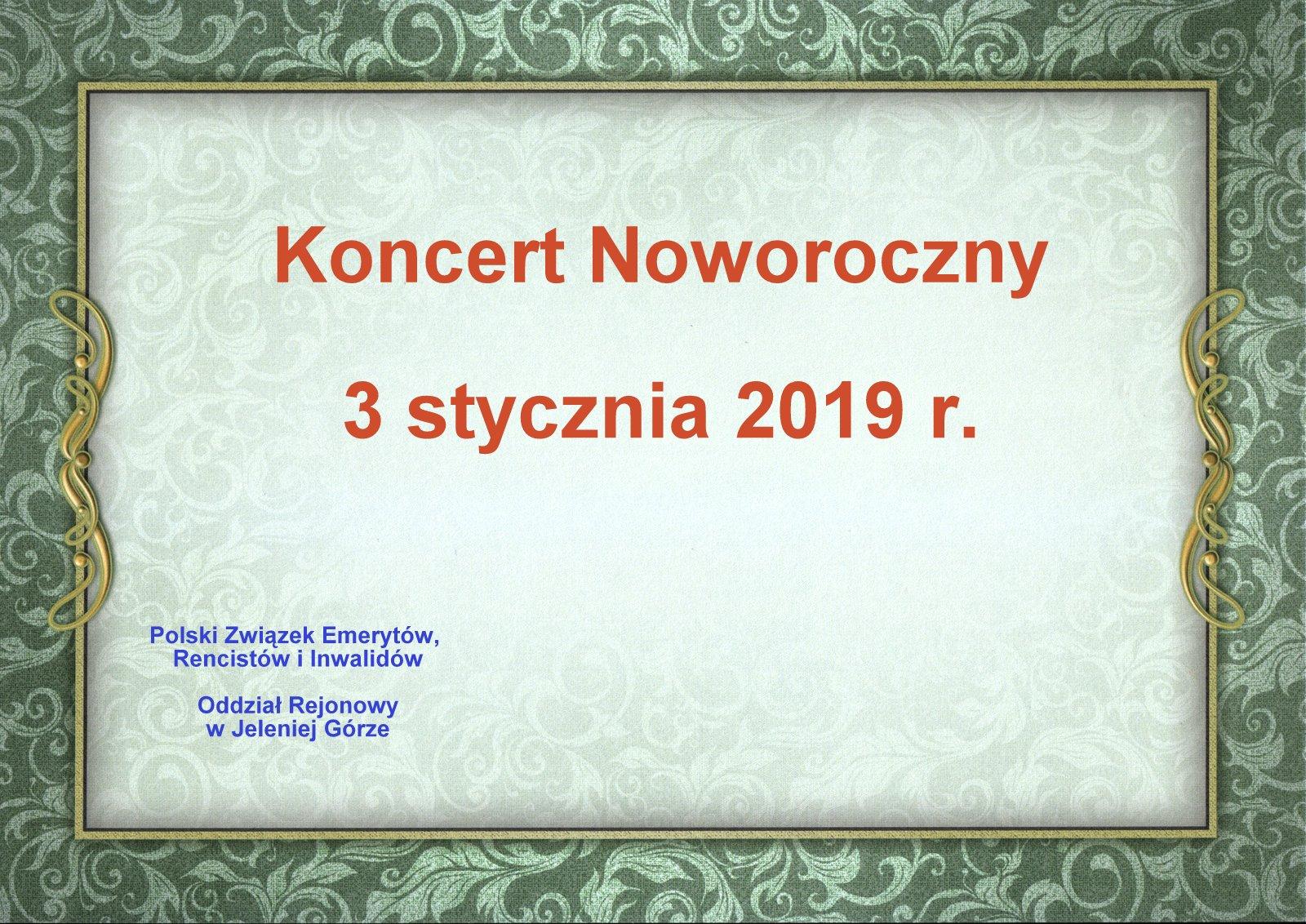 W dniu 3 stycznia 2019 r. w wypełnionej po brzegi sali Jeleniogórskiego Centrum Kultury odbył się koncert noworoczny, zorganizowany przez Polski Związek Emerytów, Rencistów i Inwalidów, Zarząd Oddziału Rejonowego w Jeleniej Górze.