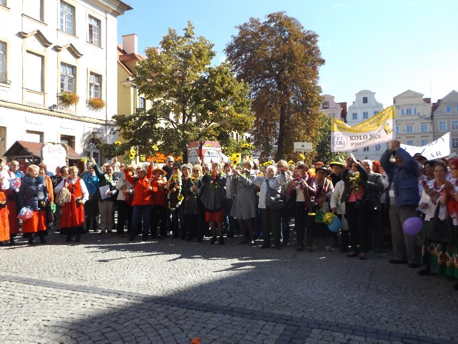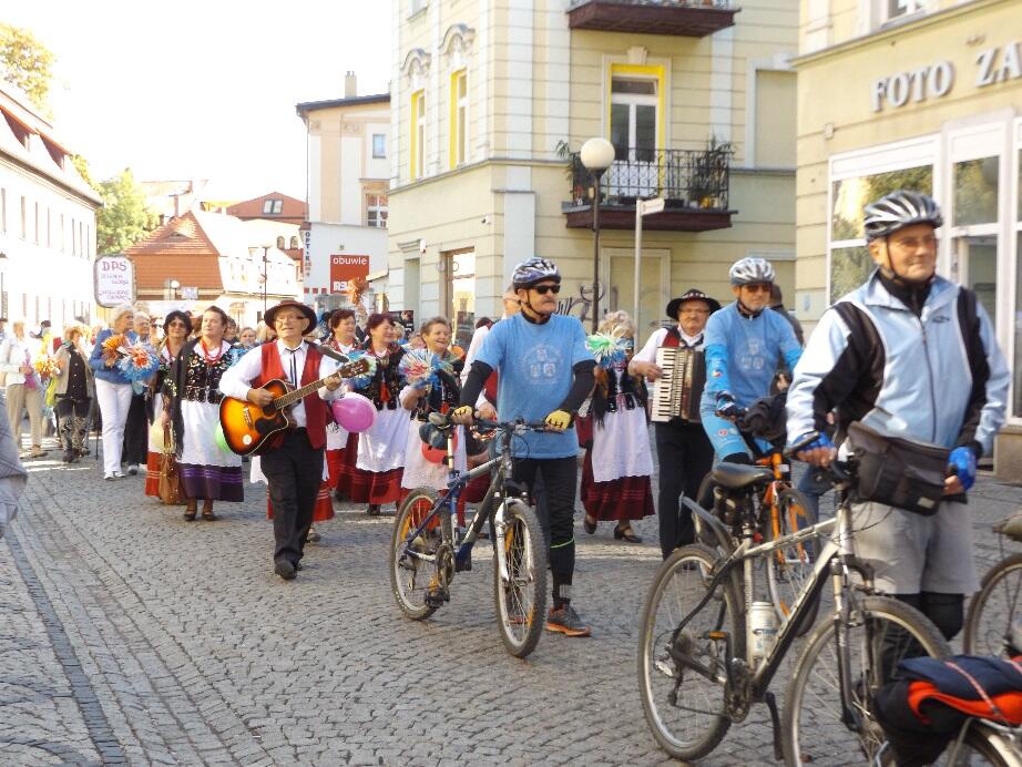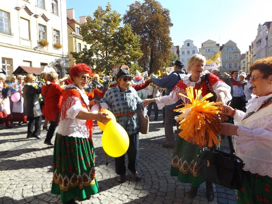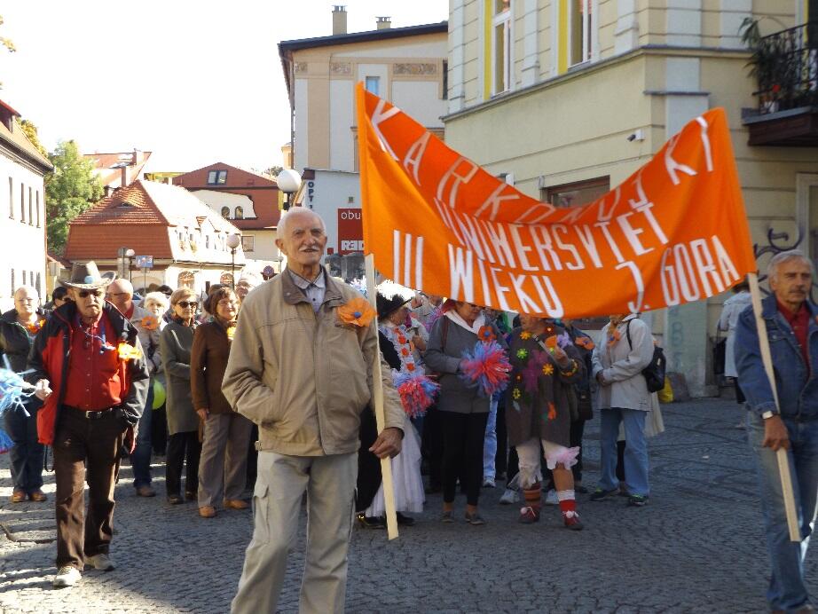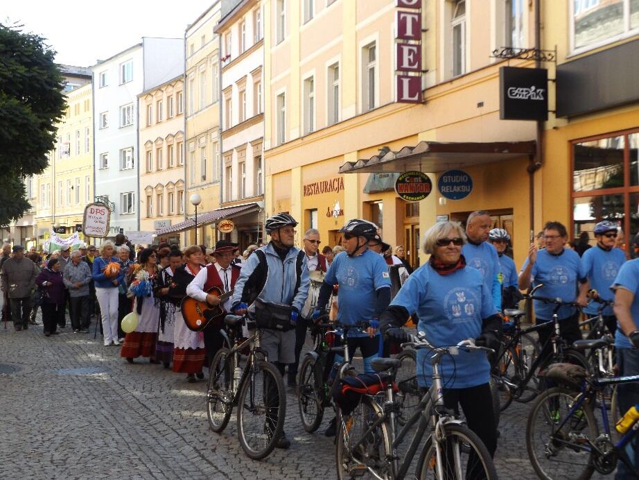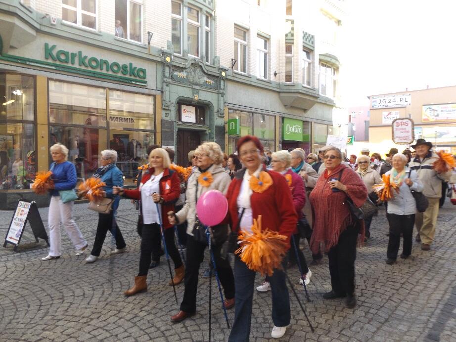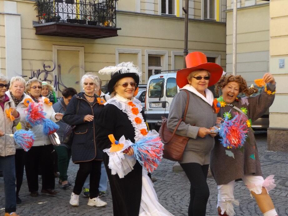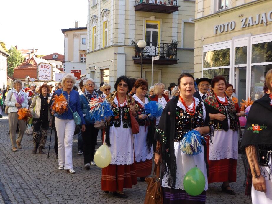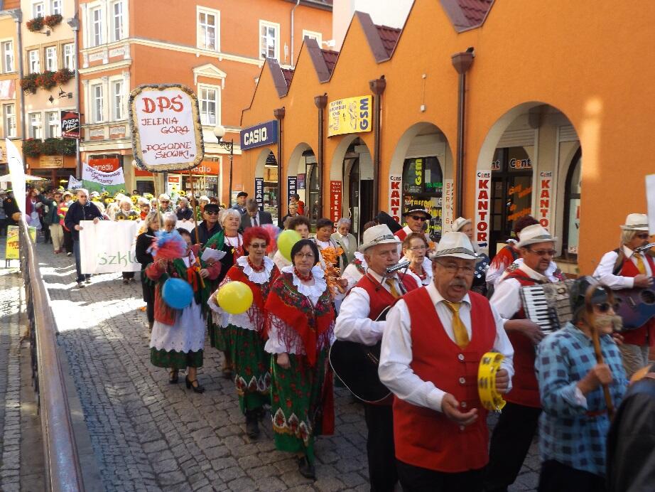 Wielobarwny korowód, w rytmie melodii granych przez Orkiestrę Dętą Filharmonii Dolnośląskiej, tradycyjnie wyruszył spod Kościoła Garnizonowego w kierunku Placu Ratuszowego. Stukot kopyt końskich na jeleniogórskim bruku obwieszczał rozpoczęcie czasu radości i zabawy dla Seniorów.